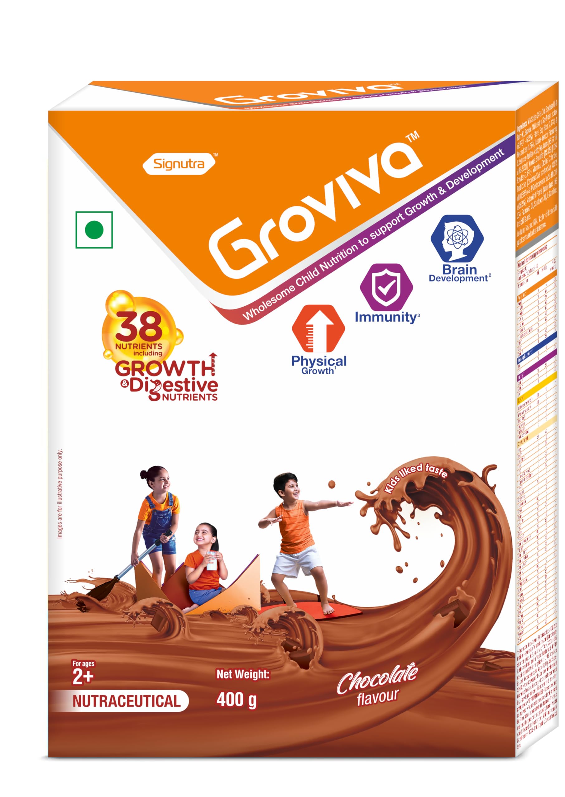 GrovivaTM is a customized wholesome child nutrition brand made as per ICMR guidelines . GrovivaTM is scientifically formulated with 38 key nutrients wherein Certi 5TM signature nutrients support the daily nutrition in children.