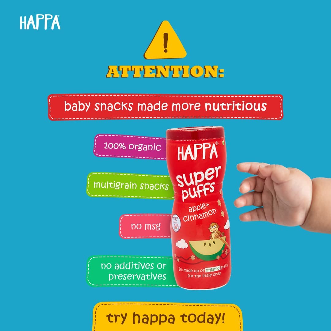 • Tasty: Happa super Puffs are a tasty and satisfying snack for babies making snacktime enjoyable and fun.