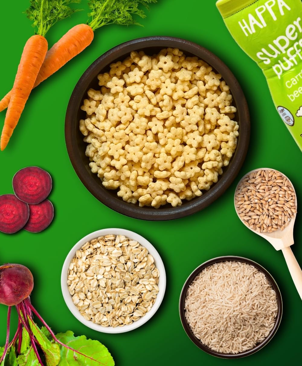 • Nutritious: Happa Puffs are made with whole grains and contain essential nutrients making them a healthy choice for your baby's diet