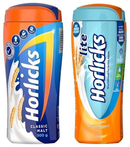 HomeBabyFeedingKids Food & SupplementHorlicks Lite Regular Malt Health & Nutrition Drink, 450g Jar & Horlicks Health & Nutrition Drink for Kids, 500g Jar | Classic Malt Flavor COMBO