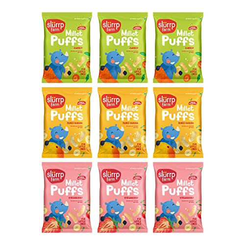 Slurrp Farm Healthy Breakfast and Snacks Trial Pack Combo Millet Pancake and Dosa Mix 300g (Pack of 6 50g each)Introducing Slurrp Farm Millet Pancake and Dosa Mix trial packs combo. Now try the goodness of Millets Berries Fruits and Vegetables in yummy and easy to cook breakfast and snacks range. 100% Vegetarian. Diet friendly meal for every member of the familySlurrp Farm Teething Puffs | Fruit and Vegetable Puffs Baked in Yummy Flavours- Carrot Strawberry & Banana Mango | Pack of 9Made by two mothers with love.