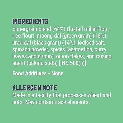 • Filled with goodness of 5 gluten free protein packed grains: foxtail millet moong daal toor daal chana daal urad daal and spinach