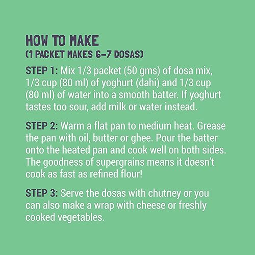 These are really yummy and easy to make. I took a pack of 3 and one pack can easily make 10-12 medium size dosas. It’s good for infants. And my little toddler niece really like it. All you have to do is add yogurt and water keep it aside for 5-10 mins. And make it on your dosa tava. Tasty, nutritious and cute packaging.