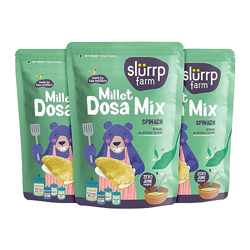 Slurrp Farm High Protein Millet Dosa Instant Mix, Supergrains And Spinach, Natural And Healthy Food, 150g (Pack Of 3)