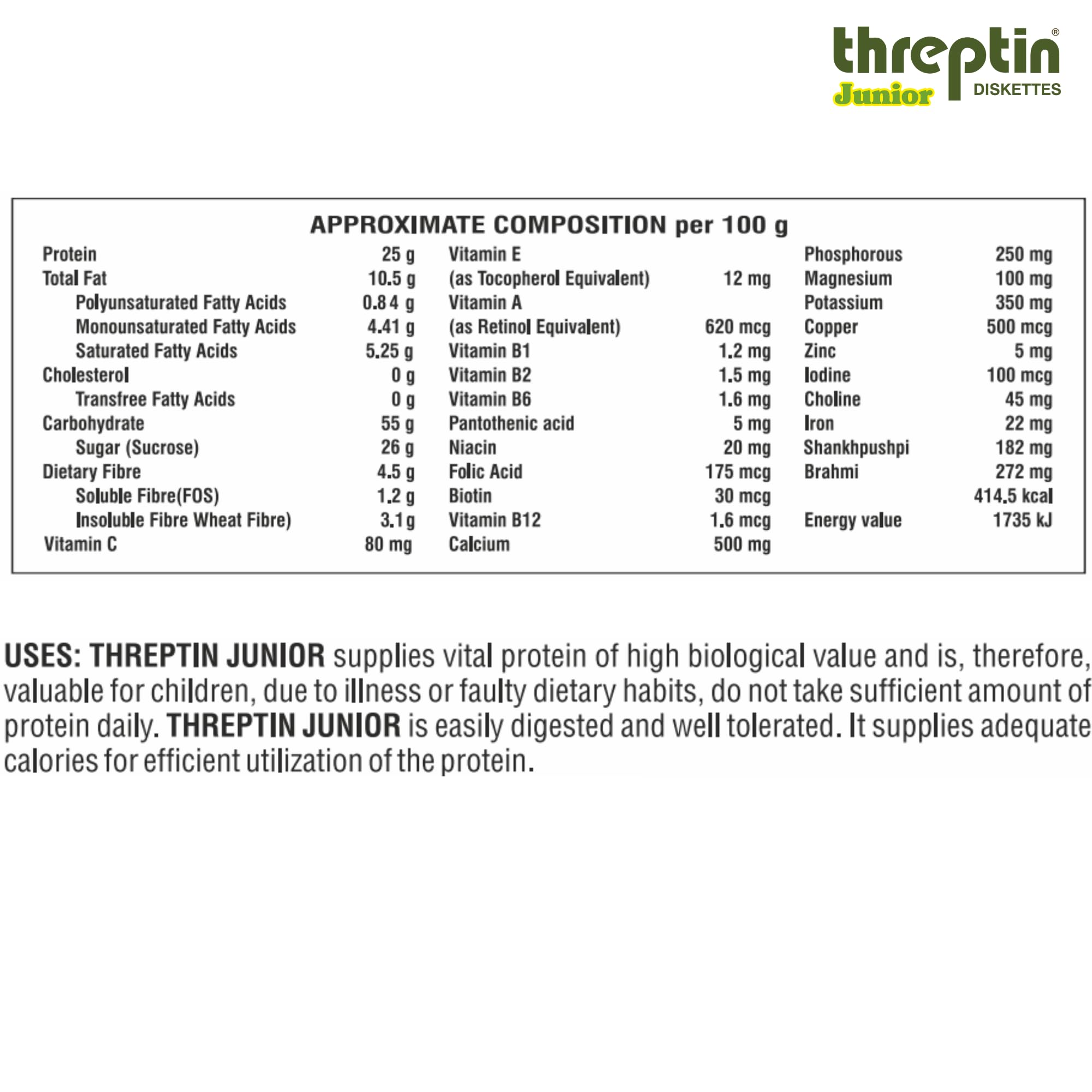 Fulfill your protein needs, enjoy effortless nutrition. Threptin tastes great anytime as a meal between meals. One of the most sought after protein diskettes in the market because the product is free of sugar and is best suited for people of different age groups.