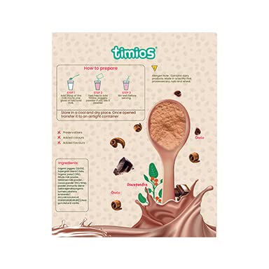 Organic jaggery (33.5%) Supergrain blend ( Oats Organic jowar) (31%) Whole milk powder Skimmed milk powder Cocoa powder (9%) Whey powder Immunity blend (ashwagandhaorganic turmericvitamins &minerals ( zinccalciumironvit D2B1B2B3B5B6B12))GuargumNatural van