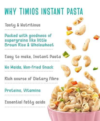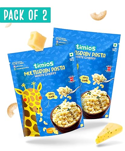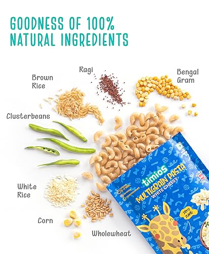 Timios No-Maida Multigrain White Cheesy Instant Macaroni Pasta | Healthy Pasta Made With Brown Rice and Corn | No Preservatives | No Artificial Colors & Flavors | No Trans Fat | Pack of 2 | 195g Each