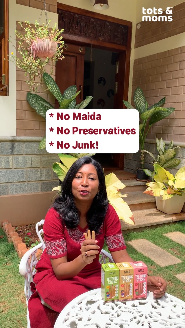 When kids start teething they chew on anything to soothe their gums. Many parents unknowingly give plastic teethers or store-bought teething sticks filled with maida white sugar and preservatives—which can be harmful to tiny tummies. That’s why we created Ragi & Sesame Teething Sticks—firm enough to comfort itchy gums easy to hold and chew and made with wholesome natural ingredients. Not just for kids these are a healthy snacking option for all ages!q c