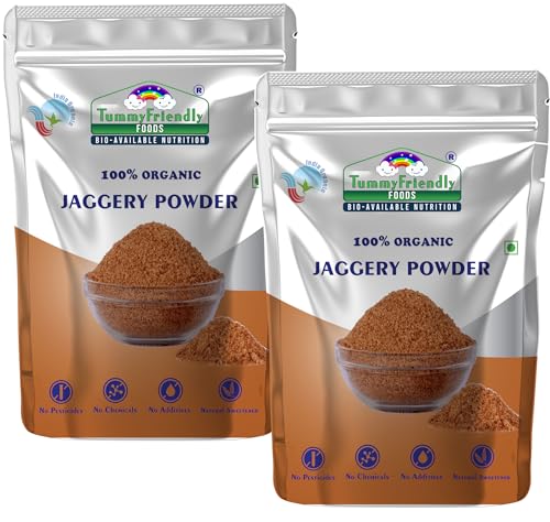 Tummy Friendly Foods Organic Jaggery Powder - 200g 2 Packs | NO HIDDEN SUGAR | Natural Sweetener | Sugar Substitute | Rich in antioxidants good source of Iron for overall health and growth of little ones. Organic Jaggery Powder for Babies Kids Adults