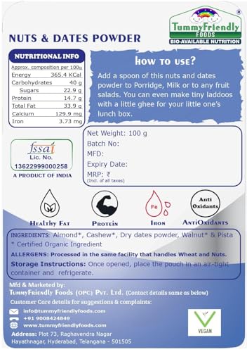 Tummy Friendly Foods Premium Nuts and Dates Powder | Natural Healthy Fat with Natural Sweetener | Organic Dry Fruit Powder For Baby | Dry Nuts Powder For Babies Kids and Adults. Buy Bigger Pack for a better price | 50g