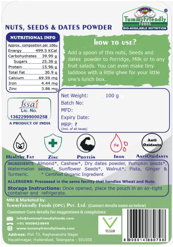 TummyFriendly Foods Premium Nuts, Seeds and Dates Powder | Dry Fruit Powder For Baby Kids | Dry Nuts For Babies Kids and Adults | No Hidden Sugar | No Preservatives | 100g