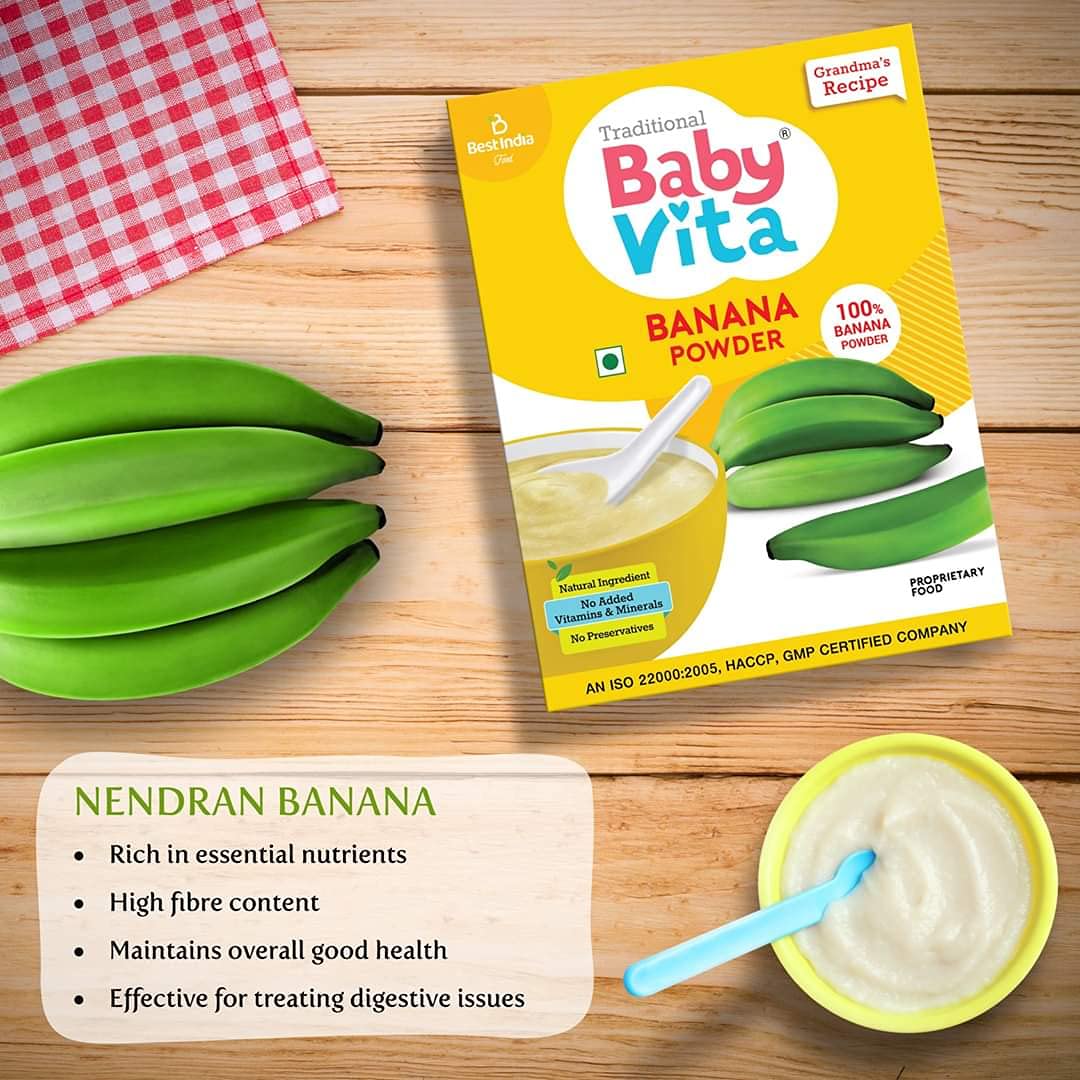 BABYVITABest India Food Processing Pvt. Ltd. is one of the leading Traditional and Proprietary food manufacturers in South India.  Our products have been recognized and accepted for its natural quality and result beyond geographical boundaries and borders over the period about three decades and the trust affirmed by millions of consumers on us are awesome and inspirational. Due to this wide acceptance the demand for our product went up manifold over the years.  BANANA POWDER Babyvita banana powder is a traditional diet made from raw Nendran banana which is rich in carbohydrate minerals dietary fibre and other such micronutrients.  It is processed under the supervision of quality managers without losing its nutritional qualities. Bananas may improve digestion and helps in building up metabolism. It gives immunity to children and elderly menOur Vision To be a world-class enterprise that is passionate about the standard of living of the consumers.  Also make customers proud by delivering superior quality products which are better than the competition which supports (simplify) the lives and provides an unmatched customer experience. Our MissionAs one of the leading Food Business Operator our mission is to provide consumers delicious affordable convenient and complementary foods to healthy and harmless life.