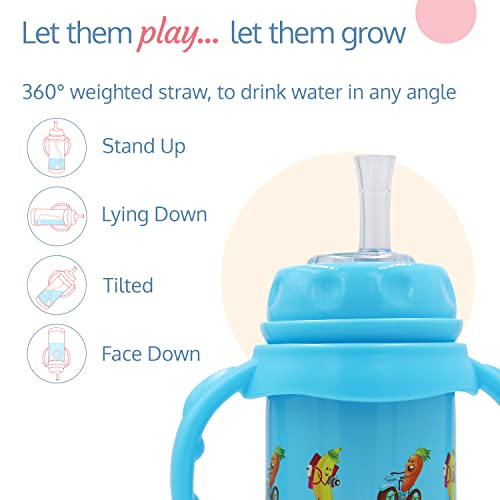 • The slim neck nipple with rounded grooves aids natural like latch on the Spout helps in self hydration and weighted straw helps in transition from Spout to straw sipper