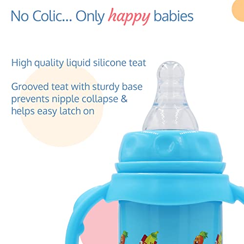 • Comes with Slim neck nipple with anti colic venting system Soft Spout & Weighted Straw so that the baby can be as he /she grows. There is also a cap to be used while the kid can use the sipper as tumbler.