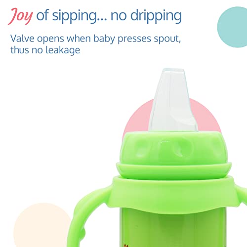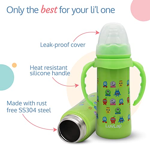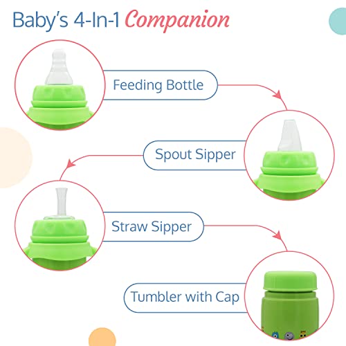 LuvLap 4 in 1 Slim Neck Steel Baby Bottle Cum Sipper with Handle, Made of SS304 Rust Free Steel, BPA Free, Odour Free, Anti Colic Nipple, Spout, Weighted Straw & Cap, Green, 3M+, 240 ml