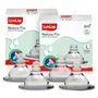 The LuvLap Natura Flo teats are 100% Liquid Silicone and have an anti-colic valve that vents air into the bottle preventing any air from entering the babys tummy. The teats are 100% Liquid Silicone and have an anti-colic valve that vents air into the bottle preventing any air from entering the babys tummy. The teat has grooves at the tip which encourage peristaltic suckling while the wide base helps the baby get a natural latch similar to that on the mothers breast. This helps easy transition between breastfeeding & bottle feeding. The grooved teats and silicone quality ensure no nipple collapse helping in an uninterrupted feed.