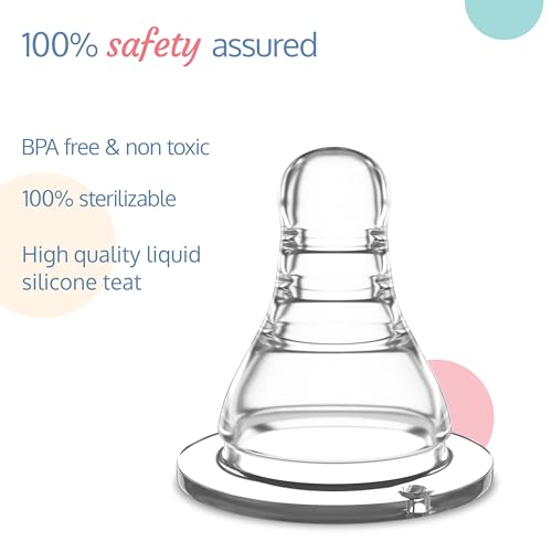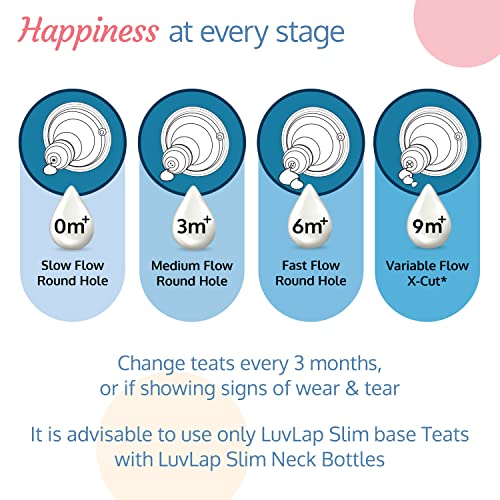 LuvLap Anti-Colic Essential Teat/Nipple for Slim Neck Bottle,2pcs Fast Flow, 6m+, Made of Soft & Flexible Silicone, Ergonomic Shape, Mimics Breastfeeding, Leak Proof, BPA Free, Comes with Sturdy Base