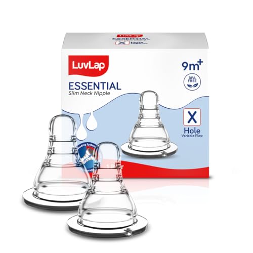 The LuvLap Essential teats are 100% Liquid Silicone and have an anti-colic valve that vents air into the bottle preventing any air from entering the babys tummy. The teat has spiral grooves at the tip which encourage peristaltic suckling and help the baby get a comfortable latch ensuring a stress-free feed every time. The grooved teats and superior silicone quality ensure no nipple collapse helping in an uninterrupted feed.