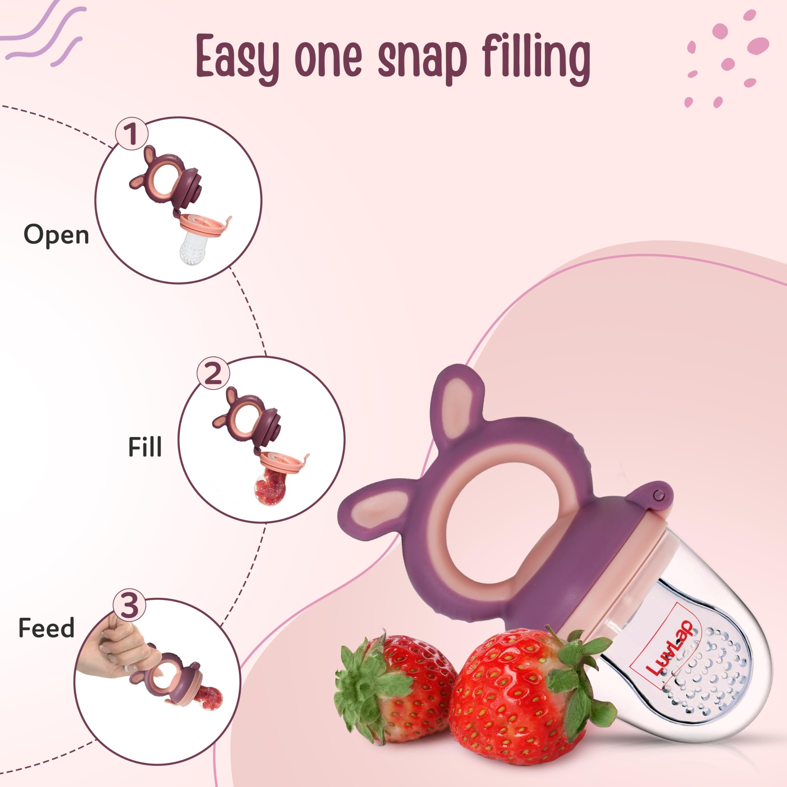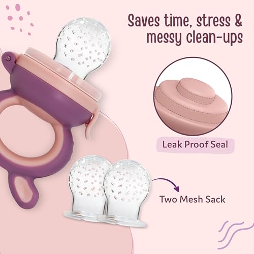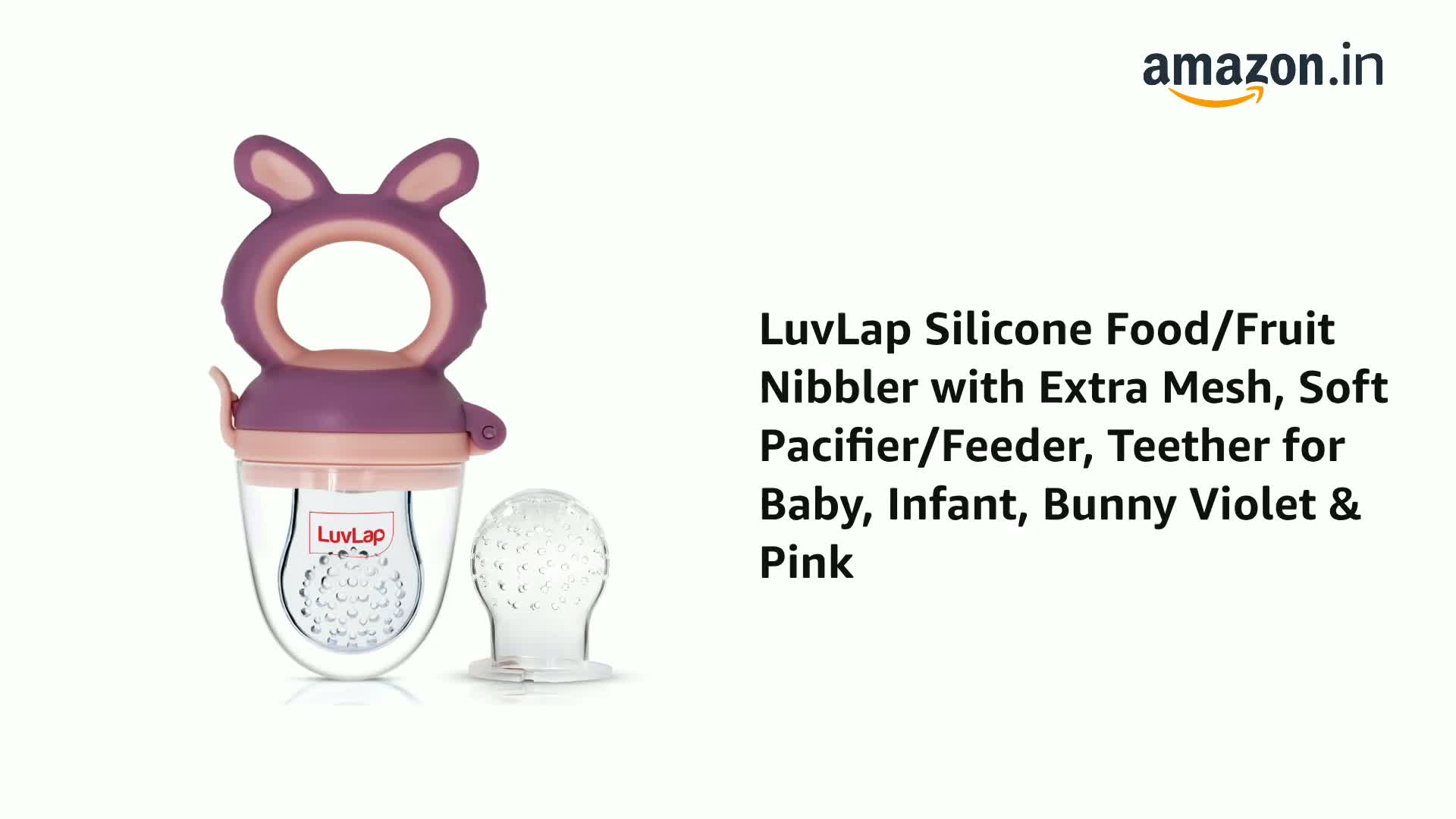 Fruit nibbler and teething toy to provide gentle relief to gums. Serves dual purpose of feeding fruit and vegetables to babies and can also be used as a teether. Can be filled with chilled fruits/vegetables to provide added relief. Made with bpa free food grade plastic and soft silicone it comes in attractive handle designs to EN gage the baby and is easy to hold and nibble upon.