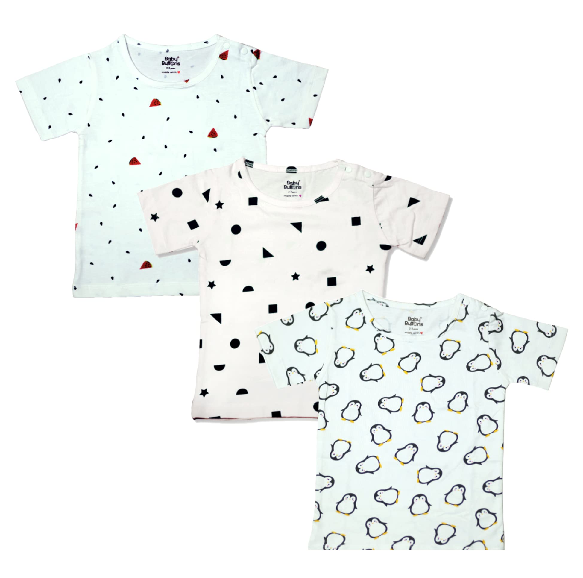 BabyButtons Unisex Baby Cotton Half Sleeve Tees/T Shirts (Assorted Pack of 3)