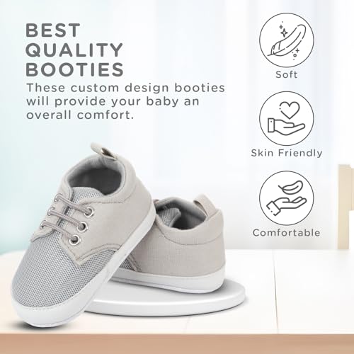Quality Material (Soft and Breathable): Crafted with premium materials these baby booties provide a soft and breathable haven for your little one's tiny feet. Playful Touch: Infused with a playful touch our baby booties add a delightful charm to your baby's adorable ensemble. Lightweight: Designed to be feather-light these booties ensure that your baby can move with ease and comfort. Easy to Put On and Take Off: With a user-friendly design these booties make dressing up your baby a breezeâeasy to put on and effortless to take off. Anti-Slip Design: Enhanced with an anti-slip feature these booties provide stability and security for your little one's early steps.