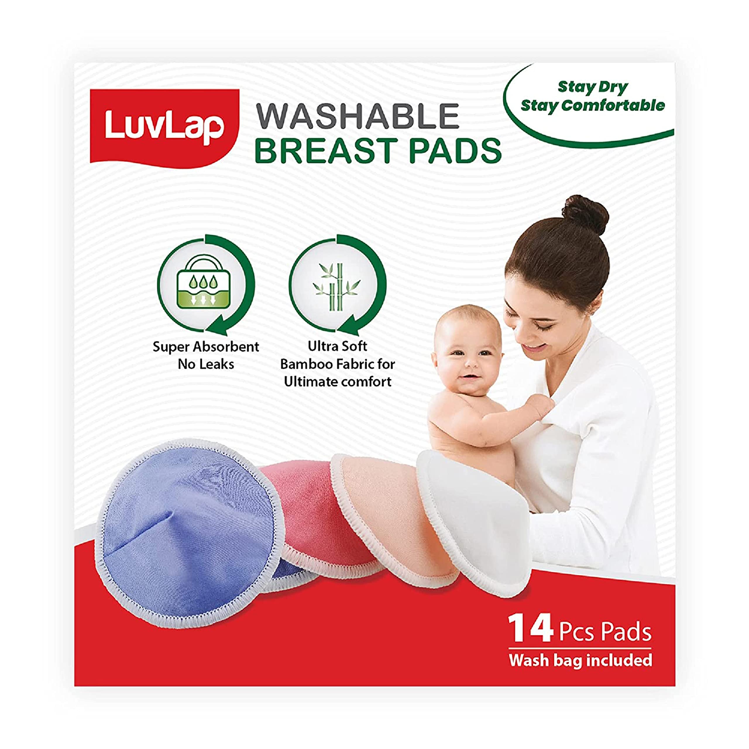LuvLap Washable breast pads quickly absorb excessive breast milk and lock in moisture for optimum dryness and comfort.