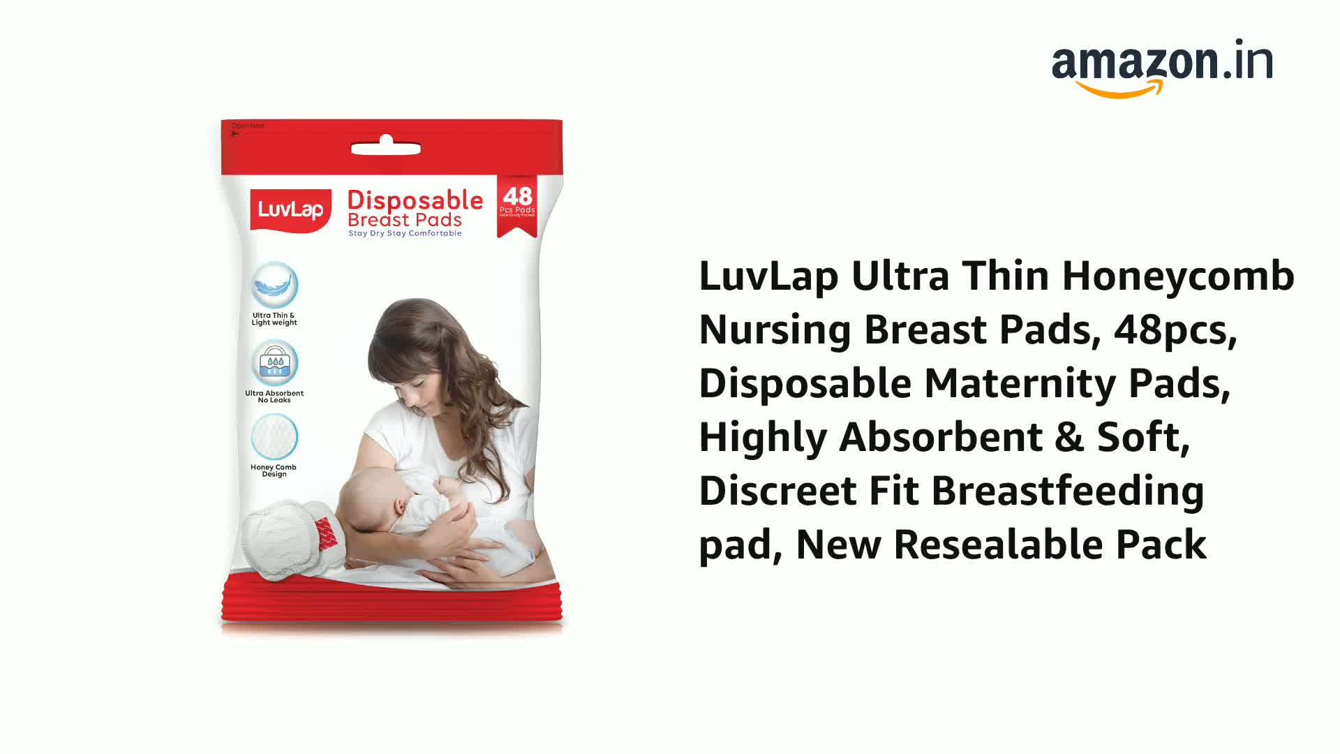 Luvlap breast pads 48's pack super absorbent pad quickly absorbs excessive breast milk and locks in moisture for optimum dryness and comfort.