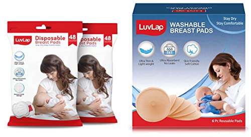 LuvLap Ultra Thin Honeycomb Nursing Breast Pads 96pcs Disposable High Absorbent Discreet FitLuvlap breast pads 96's pack super absorbent pad quickly absorbs excessive breast milk and locks in moisture for optimum dryness and comfort. Breathable and Waterproof Protective Layer Film. It Provides a powerful protection to ensure the clothes are dry and breathe freely 3D Stretch Edge the 3D stretch edge close to the chest curve it provide a natural contour and perfect fit.LuvLap Washable Maternity Nursing Breast Pads 6 Pcs Reusable Leak-ProofLuvLap washable breast pads are super absorbant reusable pads that help prevent untimely leaks and keeps you dry and comfortable.