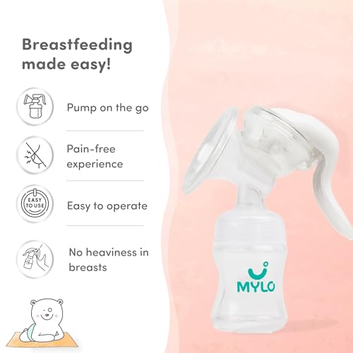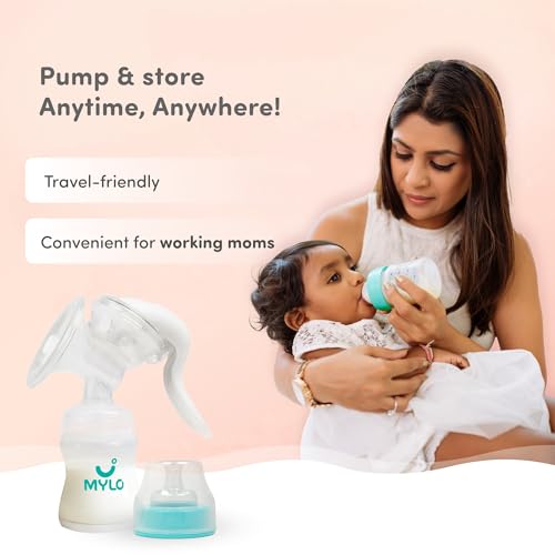 HomeBabyMaternity/Mom CareBreast FeedingMylo Manual Breast Pump For Feeding Mothers with Suction Valve (150ml)| Anti Colic & BPA Free Breast Pump| Compact, Lightweight & Easy to Clean