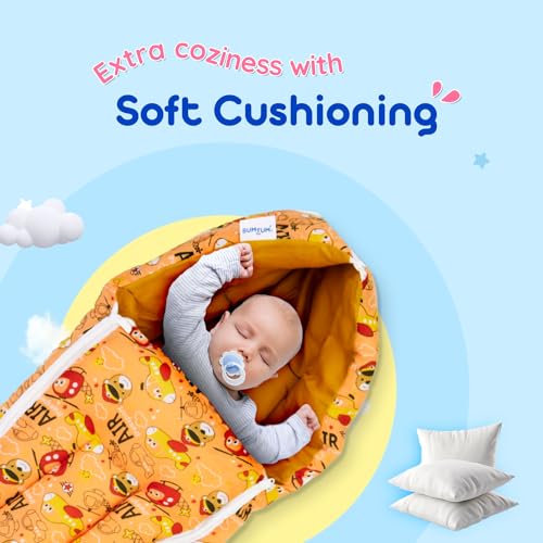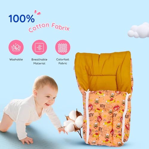 BUMTUM Air 3 in-1 Sleeping Bag 0-6 Months Baby Bed, Sleeping Bag, Carry Nest, New Born Baby Unisex, Orange, Cotton, Free Size