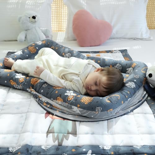TIDY SLEEP Baby Bed with Mosquito Net & Neck Pillow Baby Gadda Set for New Born 0M+ Printed Baby Gadda Baby Sleeping Bed of 90cm x 65cm x 10cm (Space)