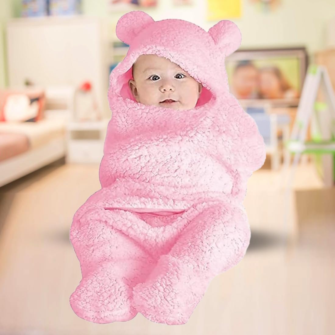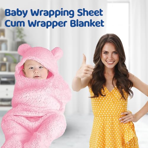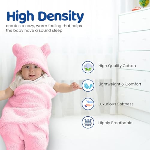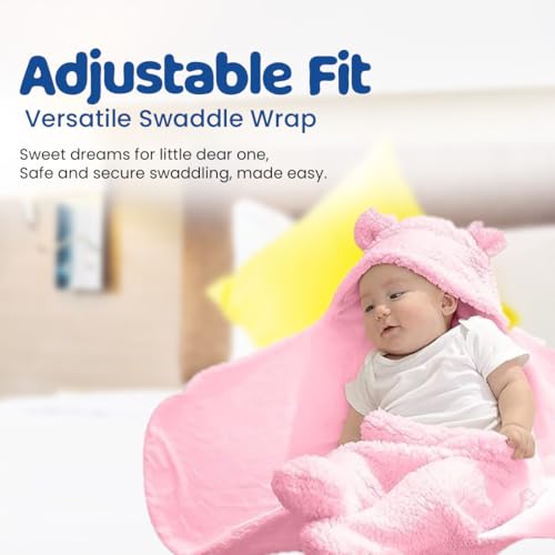 Bumtum 3-in-1 Hooded Baby Soft Blanket Wrapper| Double Layered Swaddle for New Born Babies(Boys & Girls) 0-6 Months, Travel-Friendly (Pink)