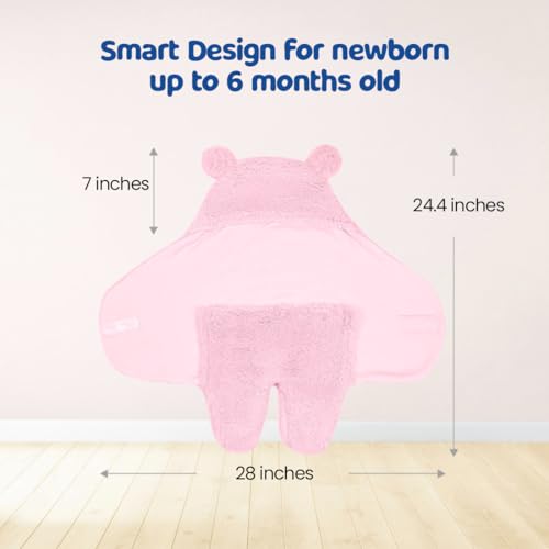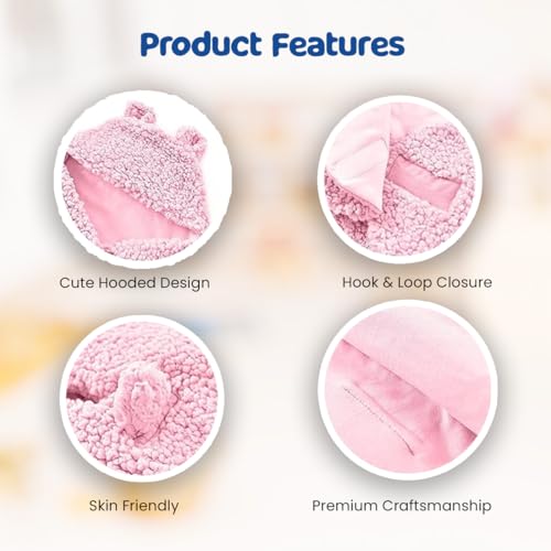 Bumtum 3-in-1 Hooded Baby Soft Blanket Wrapper| Double Layered Swaddle for New Born Babies(Boys & Girls) 0-6 Months Travel-Friendly (Pink)