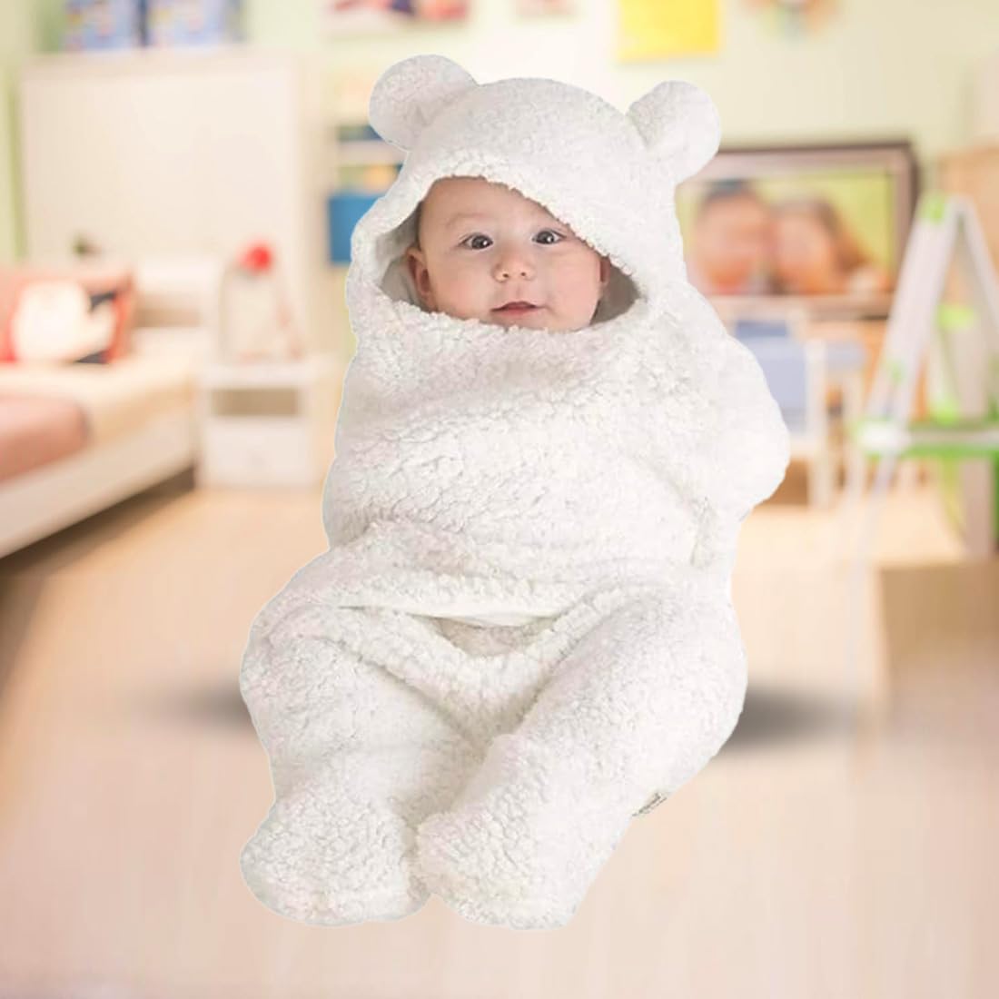 Bumtum 3-in-1 Hooded Baby Soft Blanket Wrapper| Double Layered Swaddle for New Born Babies(Boys & Girls) 0-6 Months, Travel-Friendly (White)