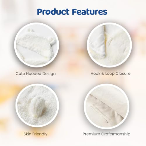 Bumtum 3-in-1 Hooded Baby Soft Blanket Wrapper| Double Layered Swaddle for New Born Babies(Boys & Girls) 0-6 Months Travel-Friendly (White)