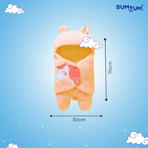 Bumtum 3-in-1 Hooded Baby Soft Blanket Wrapper| Swaddle for New Born Babies(Boys & Girls) 0-6 Months, Travel-Friendly, Unicorn Print (Orange)