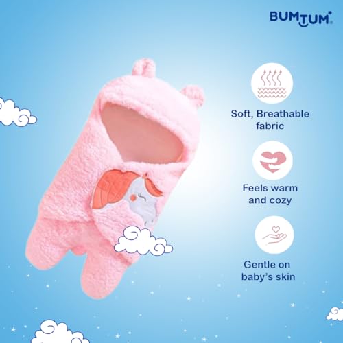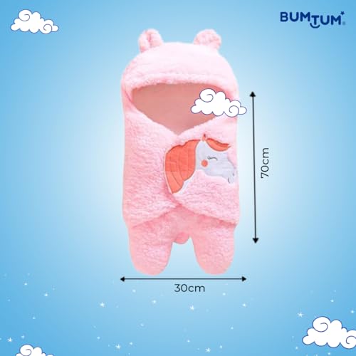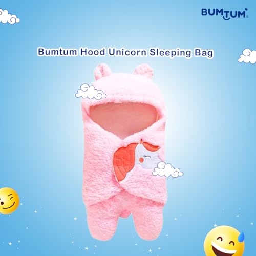 Bumtum 3-in-1 Hooded Baby Soft Blanket Wrapper| Swaddle for New Born Babies(Boys & Girls) 0-6 Months, Travel-Friendly, Unicorn Print (Pink)