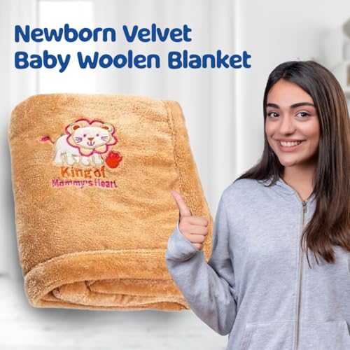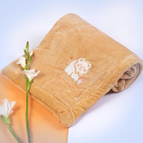 HomeBabyNurseryBaby Blankets & QuiltsBUMTUM Super Soft New Born Baby Blanket | Wrapper Sheet for Baby Boys & Baby Girls | Lion Print, Lightweight | Super Comfortable (100cm x 80cm, Biege)