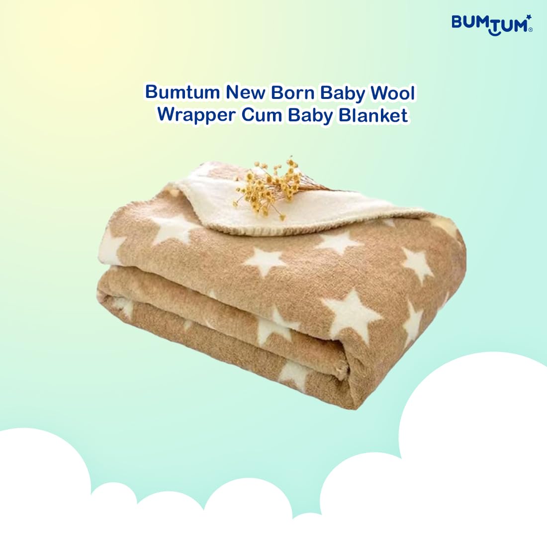 HomeBabyNurseryBaby Blankets & QuiltsBumtum Super Soft New Born Baby Blanket | Wrapper Sheet for Baby Boys & Baby Girls | Star Pattern, Lightweight | Super Comfortable (100cm x 75cm, Biege)
