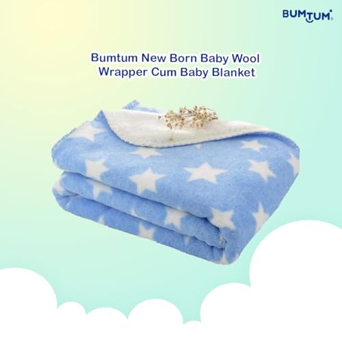 HomeBabyNurseryBaby Blankets & QuiltsBumtum Super Soft New Born Baby Blanket | Wrapper Sheet for Baby Boys & Baby Girls | Star Pattern, Lightweight | Super Comfortable (100cm x 75cm, Sky Blue)