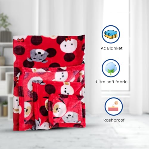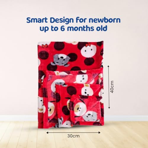 HomeBabyNurseryBaby Blankets & QuiltsBumtum Super Soft New Born Baby Blanket | Wrapper Sheet for Baby Boys & Baby Girls | Teddy Pattern Lightweight | Super Comfortable (100cm x 75cm, Red)