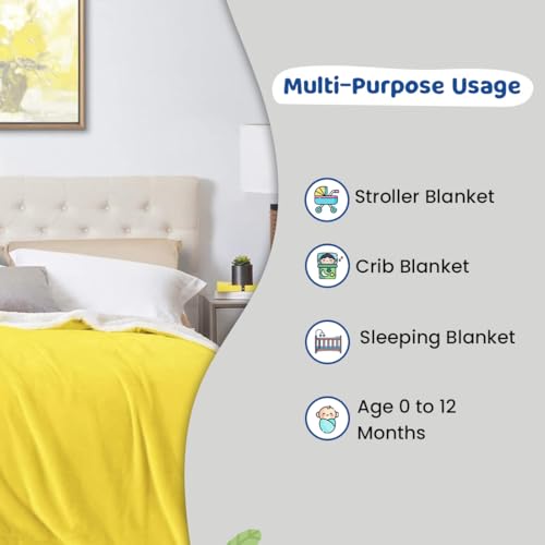 HomeBabyNurseryBaby Blankets & QuiltsBUMTUM Super Soft New Born Baby Double Layer AC Blanket | Wrapper Sheet for Baby Boys & Baby Girls | Lightweight | Super Comfortable (130 x 105cm, Yellow)