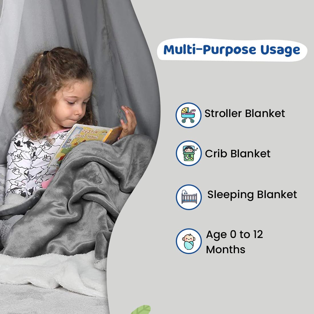 Bumtum Super Soft New Born Baby Double Layer AC Blanket | Wrapper Sheet for Baby Boys & Baby Girls | Lightweight | Super Comfortable (130cm x 105cm Grey)