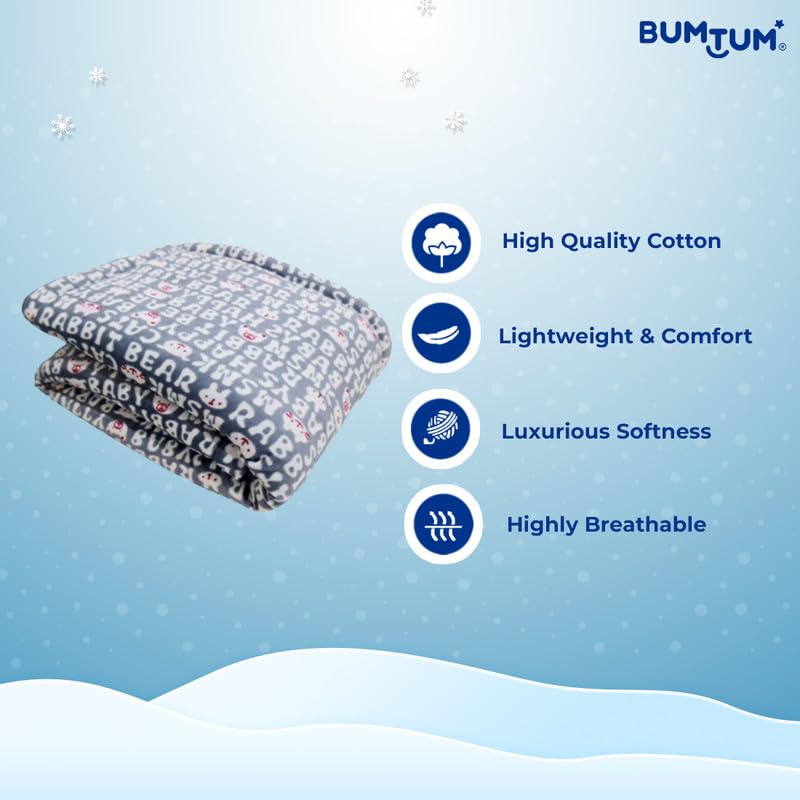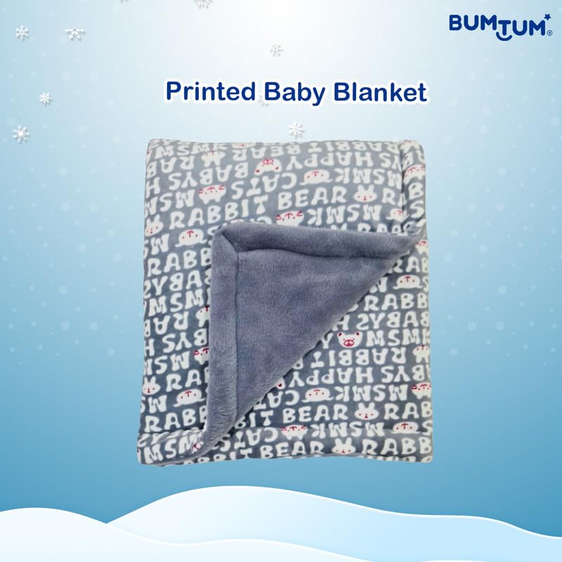 HomeBabyNurseryBaby Blankets & QuiltsBumtum Super Soft New Born Baby Printed Blanket | Wrapper Sheet for Baby Boys & Baby Girls | Lightweight | Super Comfortable (96cm x 70cm, Grey)