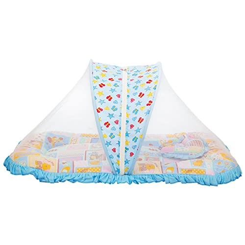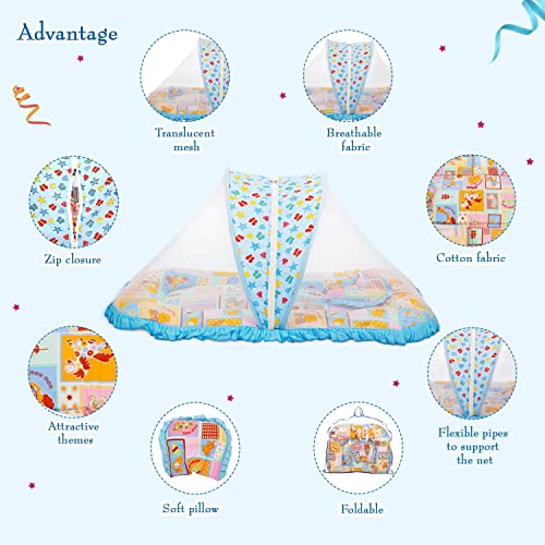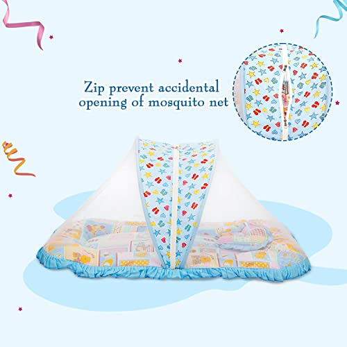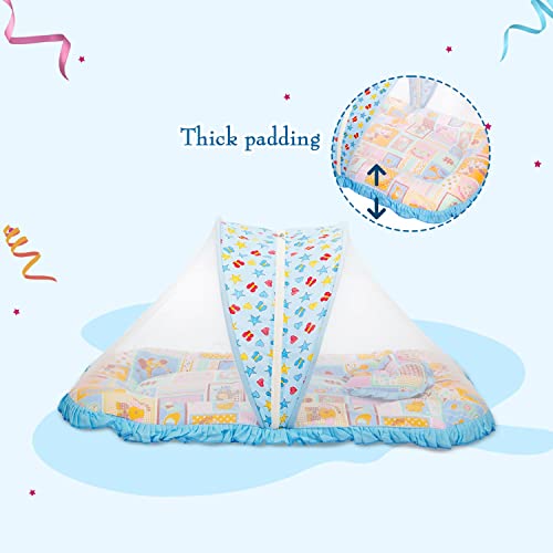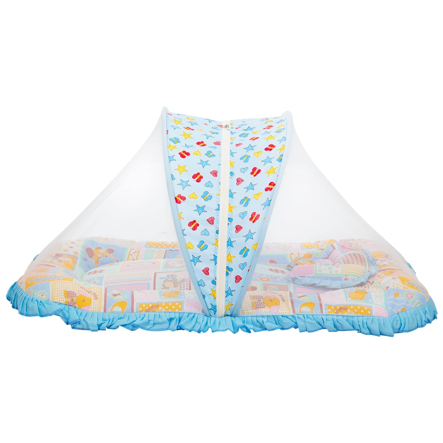Mee Mee Cushioned Baby Mattress Set with Mosquito Net and Pillow (Blue)