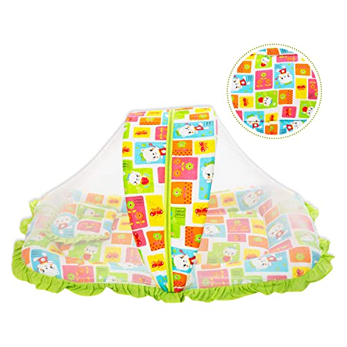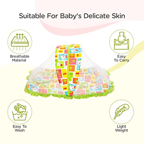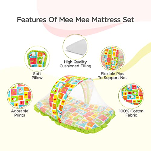 Mee Mee Cushioned Baby Mattress Set with Mosquito Net and Pillow (Green)