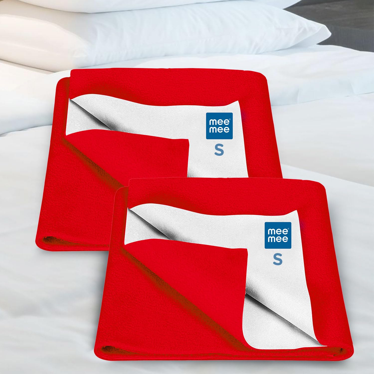 HomeBabyNurseryBaby Blankets & QuiltsMee Mee Instadry Anti-Piling Fleece Extra Absorbent, Cotton Bed Protector Mattress, Reusable Waterproof Quick Dry Baby Cot Sheet for Infant, Made Form Skin Friendly, 0 to 9 Month, 50x70cm (Red)