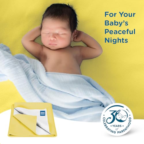 Mee Mee Premium Pista Green Cotton Baby Bed Protector: Ultra-Absorbent, Quick-Dry Mattress Sheet for Newborns, Breathable, Soft & Reusable - Fits 0-24 Months, 70x100cm (Medium, Yellow)