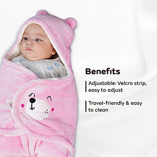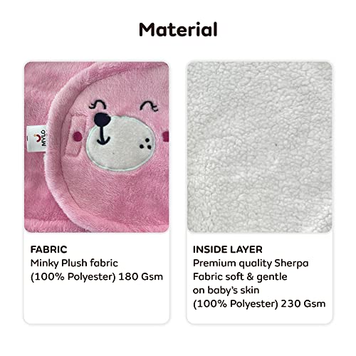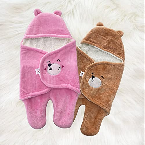 MYLO Baby Ultra-Soft Cute Baby Pack of 2 | Swaddling Wrapper | All Season Ac Blanket -Multipurpose | Hoodie Teddy Bear|0-6 Months (Light Pink+Light Brown)