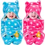 OYO BABY 3-in-1 Hooded Baby Blanket Wrapper - Pack of 2 (Star Pink and Blue) Towel for Baby Boy and Girl | All Season Soft Swaddle | 0-6 Months | Nursing Baby Gifts | Bath Robe